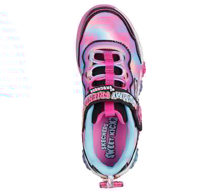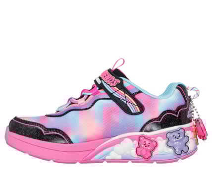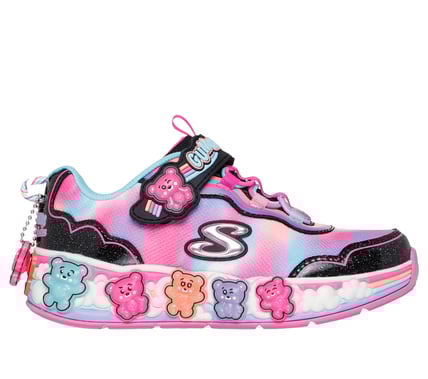 Enjoy the comfort of sweet feet pals wearing Skechers Sweet Kickz®: Gummy Friends. This scented gummy bear themed design features a mesh and patent glitter overlay upper with fixed stretch laces, adjustable instep strap, detachable heel charm, and a cushioned comfort insole.