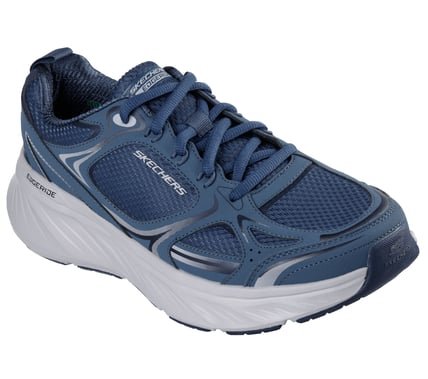 Step into eco-friendly comfort with the Skechers Relaxed Fit®: Edgeride - Exodis. This vegan-friendly sneaker features a synthetic and textile upper, Skechers Air-Cooled Memory Foam® insole, and is crafted with recycled materials.