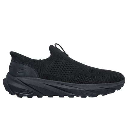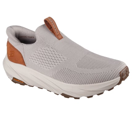 Step up your walking style in casual comfort wearing Skechers Hands Free Slip-ins® Relaxed Fit®: Conner - Milton. This laceless vegan slip-on features a knit and synthetic upper with a pull tab, a cushioned charcoal-infused Skechers Air-Cooled Memory Foam® insole, Memory Arch™ cushioning for added support, plus an anti-slip Goodyear® Rubber Outsole.