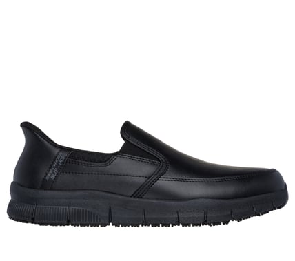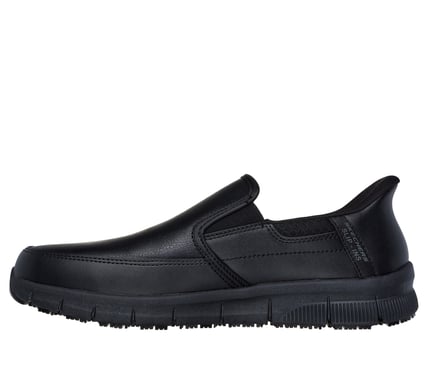 Surefooted comfort and easy-wearing safety combine in Skechers Hands Free Slip-ins® Work™: Nampa - Broxtin. Designed with our Heel Pillow®, this slip-resistant style features a smooth leather upper with double-gore panels and a cushioned Skechers Air-Cooled Memory Foam® insole.