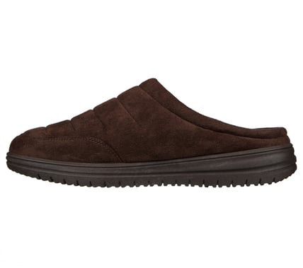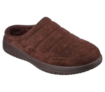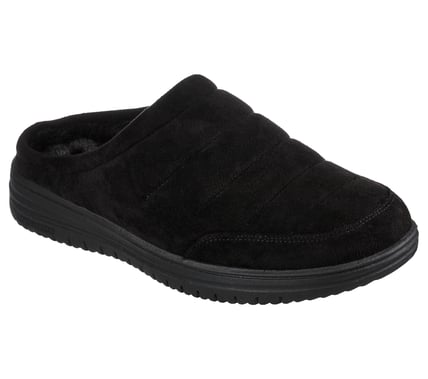 Keep it cozy in laid-back comfort with Skechers Relaxed Fit®: Murette - Garvanza. Featuring a soft microfiber fabric upper in a backless slipper clog with a faux-fur lined Luxe Foam® footbed.