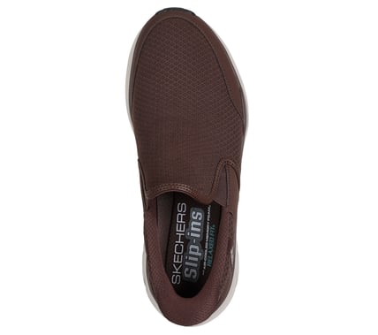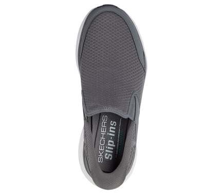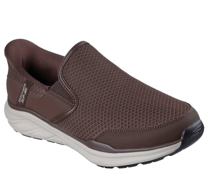 Step into effortless comfort with Skechers Hands Free Slip-ins® Relaxed Fit®: Equalizer 6.0 - Stoaver. Designed with our Heel Pillow®, this laceless vegan slip-on features a mesh and synthetic upper with twin gore panels and a Skechers Air-Cooled Memory Foam® insole.