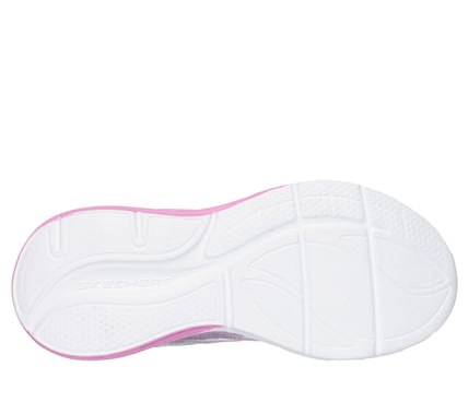 Light up the playground wearing Skechers S-Lights®: Cosmic Glow. This light-up active design features an ombre sparkle mesh and synthetic upper with stretch laces, an adjustable instep strap, and a well-cushioned midsole with step-activated lights.