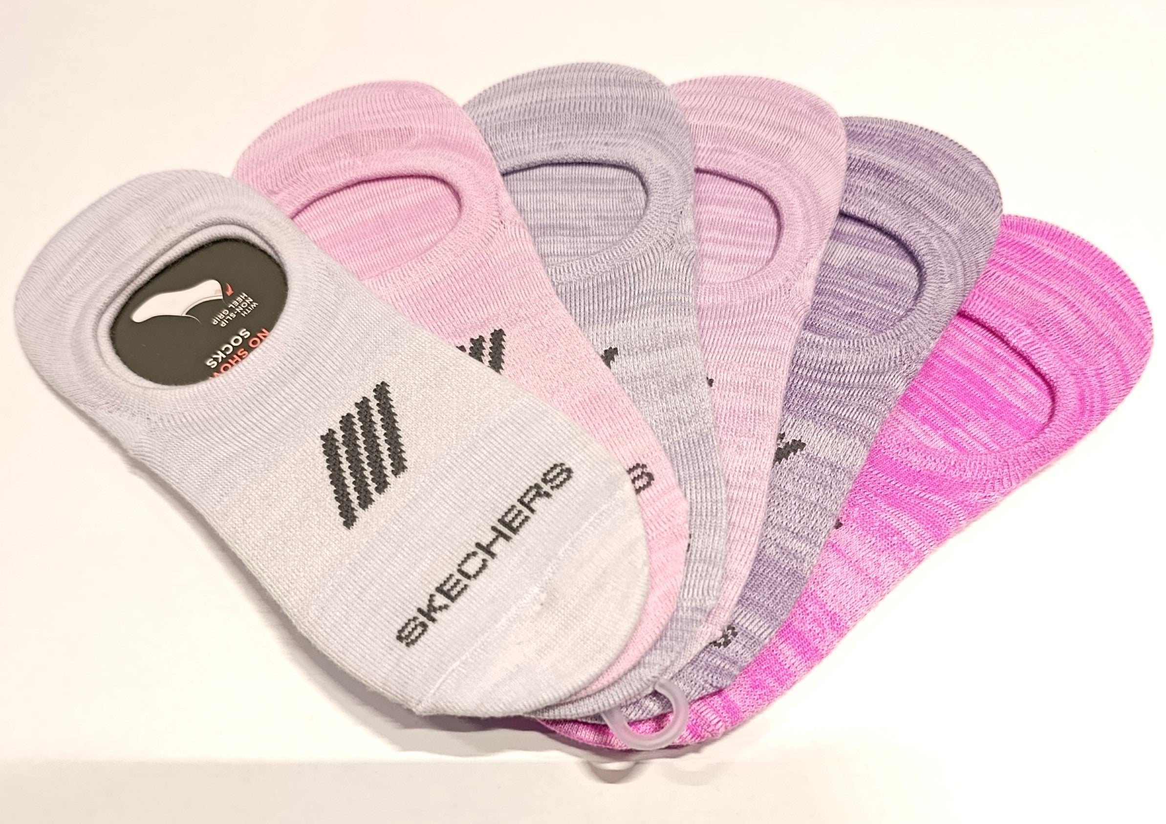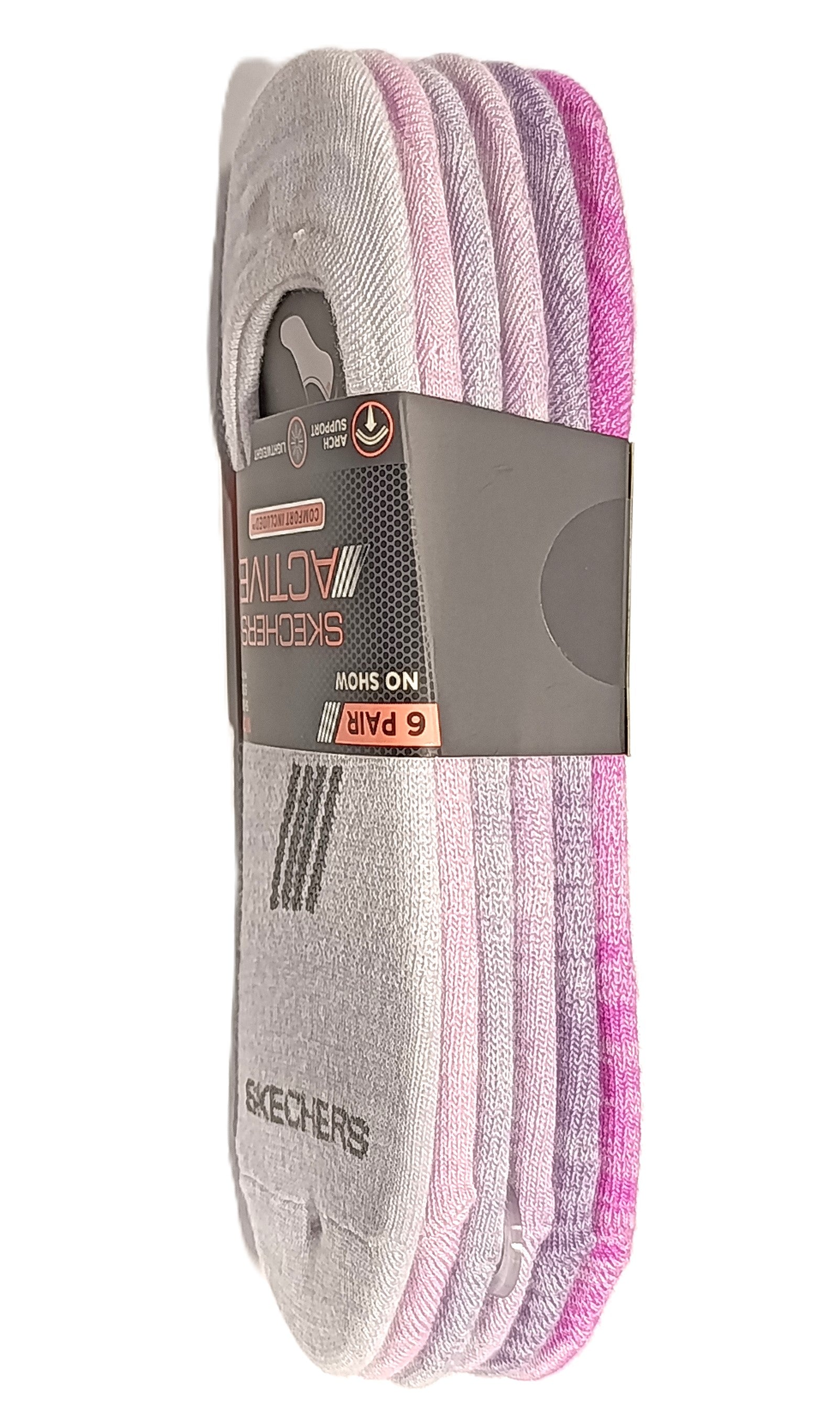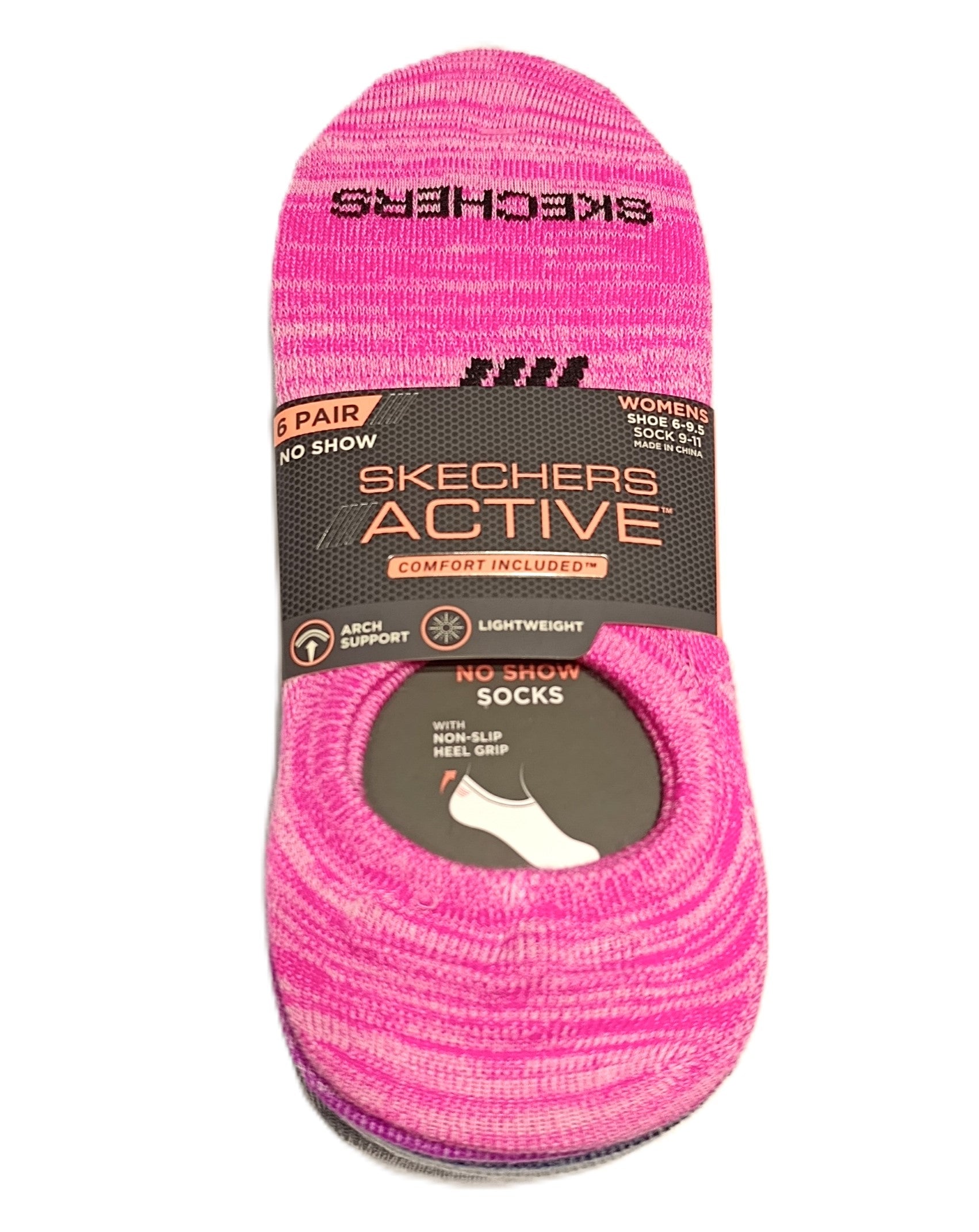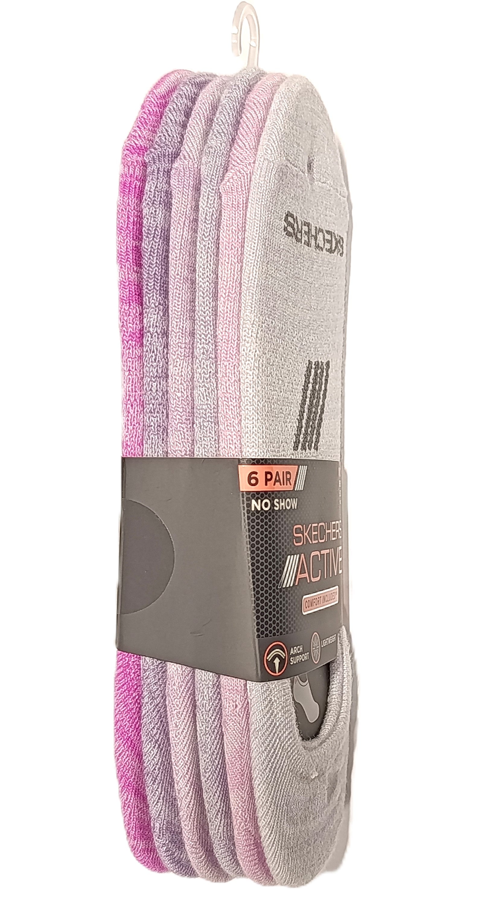 "Enjoy lightweight comfort and a barely-there feel with the Skechers 6-Pack Women's Non-Terry No Show Socks. These low-profile socks are perfect for wearing with sneakers or casual shoes, offering a sleek fit that stays hidden. Made with soft, breathable fabric and stretch for all-day comfort.