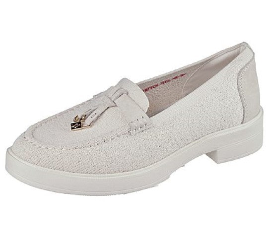 Go green in chic eco-friendly style wearing Skechers Cleo® Taylor - Alluring Adventure. Designed with recycled materials, this loafer features a Stretch Fit® knit upper with pigskin leather trim and a cushioned Skechers Air-Cooled Memory Foam® insole. Our Planet Matters®: Good for your feet. Good for the world