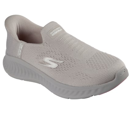 Step into convenient walking comfort and cushioning wearing Skechers Hands Free Slip-ins Go Walk Now - Anahi. Designed with our heel pillow, this sporty vegan slip-on features an engineered stretch knit upper in a laceless fit, a skechers air-cooled goga mat insole, and responsive ultra light cushioning.