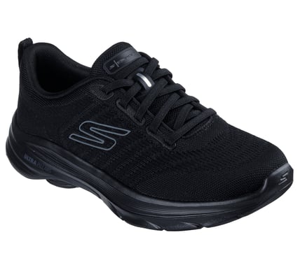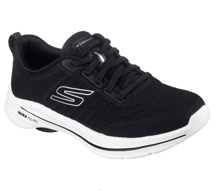 Put a stylish spring in your step with Skechers GO WALK™ 8 - Britt. This vegan walking style features a two-tone engineered knit upper with fixed stretch laces, a breathable Skechers Air-Cooled Goga Mat™ insole, lightweight ULTRA GO® midsole cushioning, high-rebound Ultra Pillars®, and Comfort Pillar Technology® for added support.