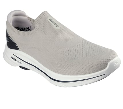 Experience supreme walking comfort and cushioning wearing Skechers GO WALK 8™ - Gabe. This easy-on sporty style features a laceless Stretch Fit® knit upper, a breathable Skechers Air-Cooled Goga Mat™ insole, lightweight ULTRA GO® Foam midsole cushioning, and high-rebound Ultra Pillars® for added support.