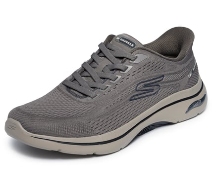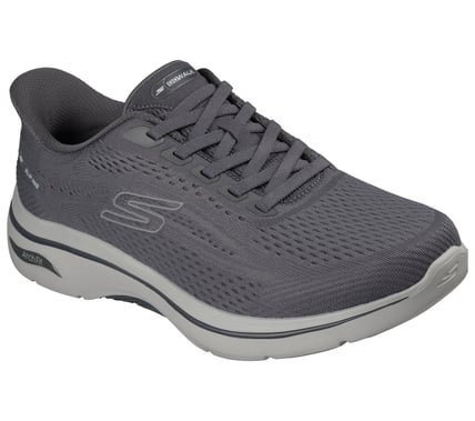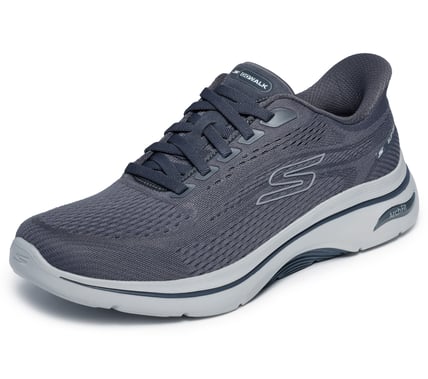 WALKING IS A SPORT® Head out on your walk in ultimate support and ease wearing Skechers Hands Free Slip-ins®: GO WALK® Arch Fit® 2.0 - Percy. Designed with our Heel Pillow®, this sporty vegan slip-on has been granted the APMA Seal of Acceptance and features a circular knit upper with fixed stretch laces, lightweight ULTRA GO® cushioning with Comfort Pillars™ for added support, and a removable Arch Fit® insole.