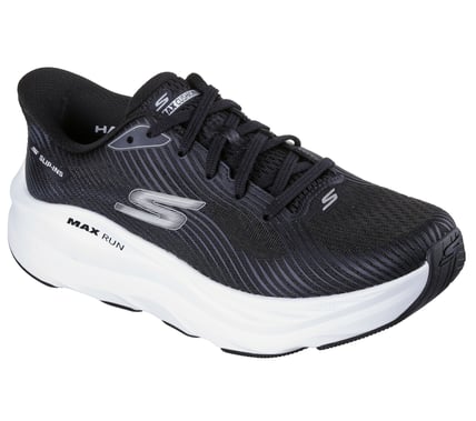 Stride towards your personal best in effortless comfort with Skechers Hands Free Slip-ins®: Max Run - Echoridge. Designed with our Heel Pillow®, this slip-on running style features a mono mesh upper with adjustable laces, a high-rebound Skechers Air-Cooled Goga Mat™ insole, ULTRA LIGHT midsole cushioning with stride-efficient M-Strike® technology, our Skechers Max Cushioning® midsole, plus a high-traction Goodyear® Performance Outsole.