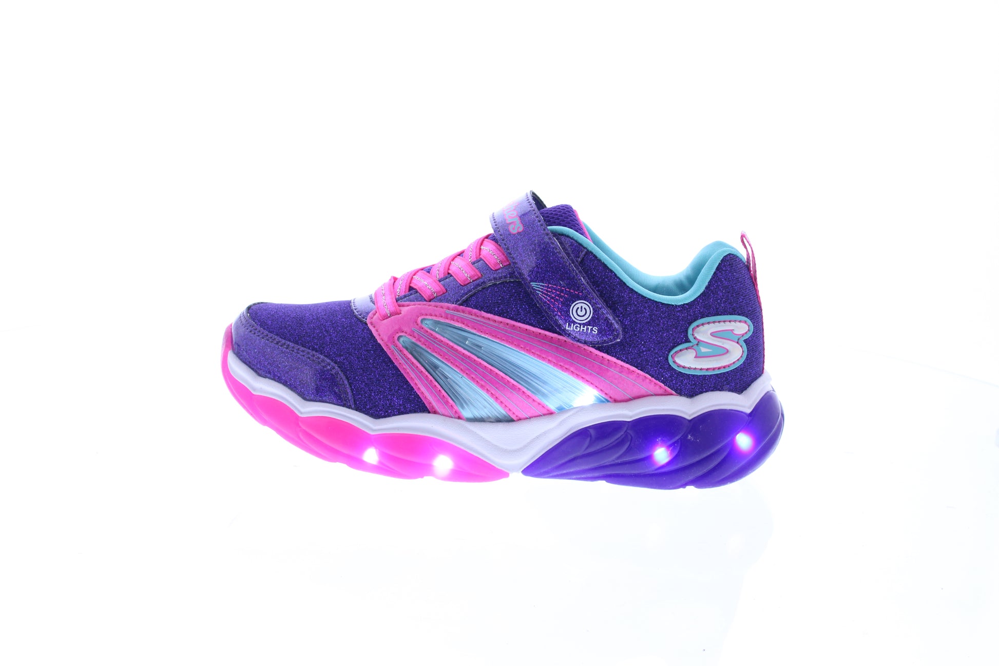 Keep those lights going strong and bright with the SKECHERS S Lights: Fusion Flash shoe. Sporty mesh and synthetic upper in a slip on stretch laced front casual light up sneaker with 'hidden' lights, sporty detail and on/off light switch.