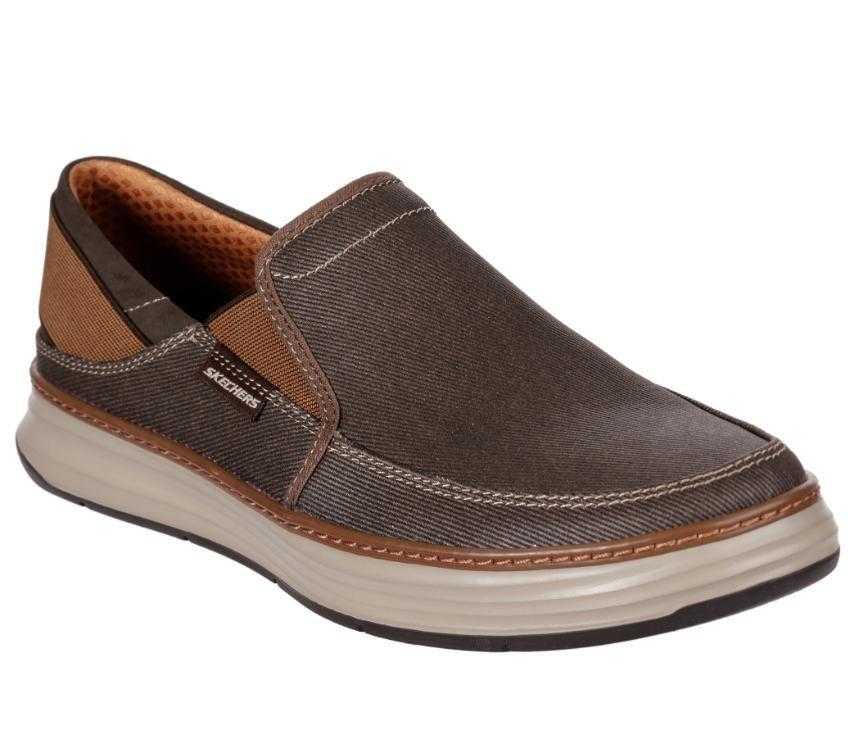 Re-establish your loafing game in easygoing style and enhanced comfort with the SKECHERS Moreno - Welmer shoe. Woven soft canvas fabric upper in a slip on casual comfort loafer moc with stitching accents. Air Cooled Memory Foam insole.